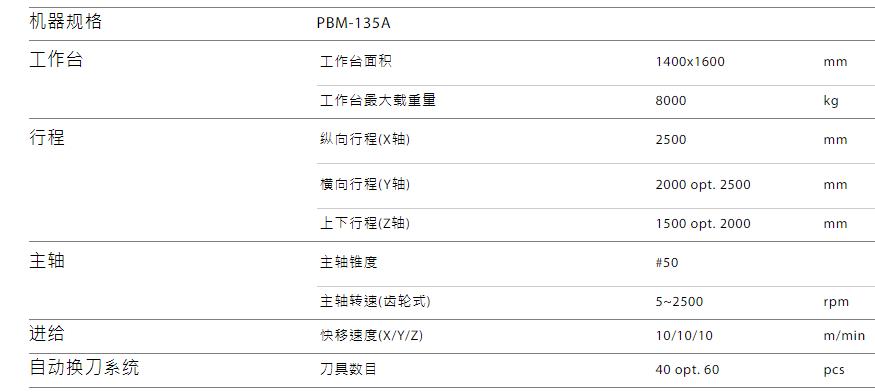 臺(tái)灣協(xié)鴻數(shù)控鏜銑床PBM-135規(guī)格參數(shù)