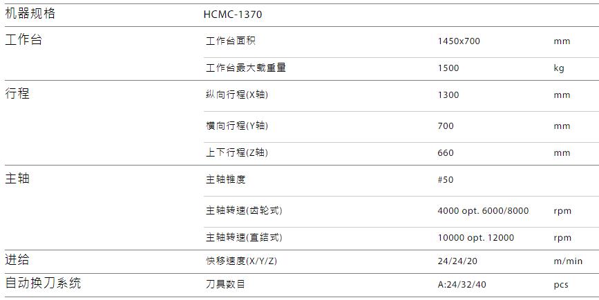 臺灣協(xié)鴻1300立式加工中心HCMC-1370規(guī)格參數(shù):